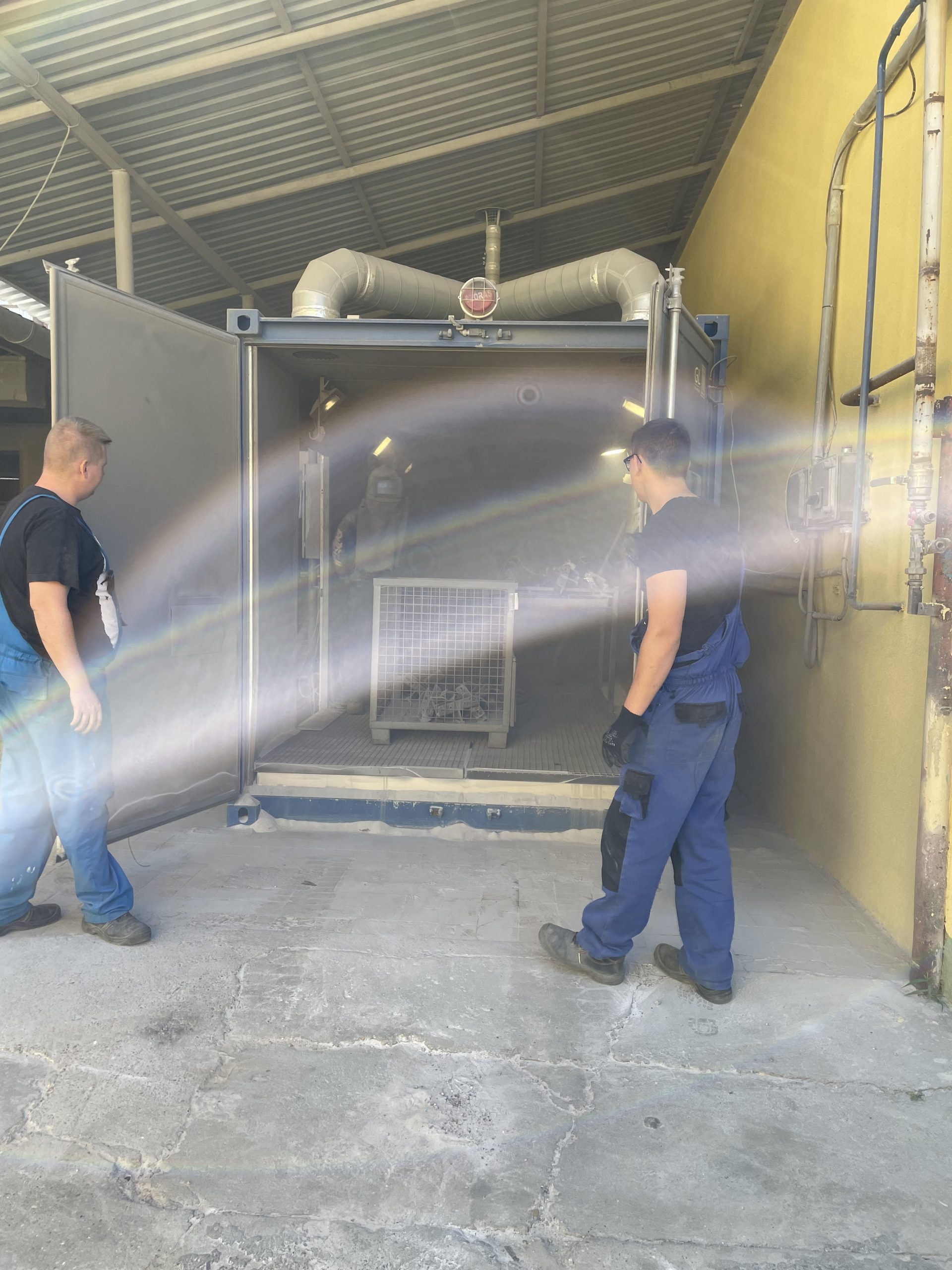 - Szemcseszóró konténer: Nagy méretű tárgyak kezelésére alkalmas konténerünk belmérete 1500x2500x5500 mm, amely lehetővé teszi a nagyobb szerkezetek és alkatrészek alapos tisztítását.